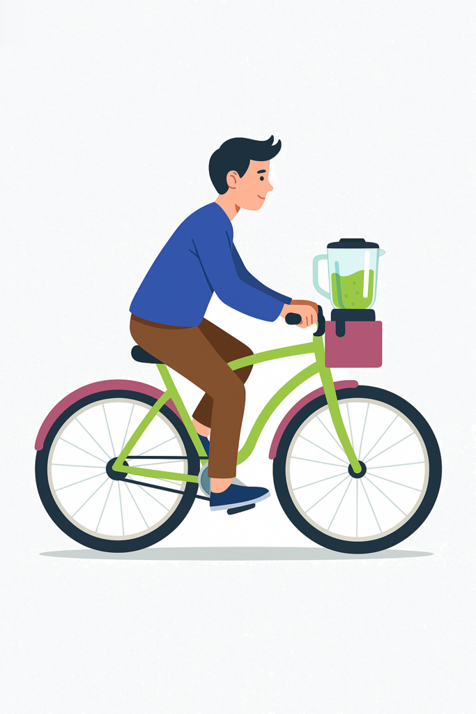 Le Vélo Mixeur permet de concocter smoothies et soupes à l’aide de vos jambes. Cet outil ludique permet de sensibiliser petits et grands à plusieurs thématiques : énergie, alimentation, et déplacements.
